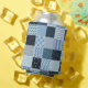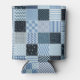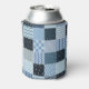 Quilt design, geometric patchwork, blue tones. can cooler