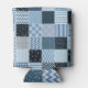 Blue patchwork tales: Stitched geometric marvels in textile print.