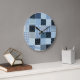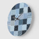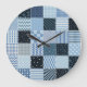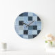 Quilt design, geometric patchwork, blue tones. large clock