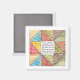 Quilt design on a refrigerator magnet. Inscribed quote: "I like to think of my family as a big, beautiful patchwork quilt -- each of us so different yet stitched together with love and life experiences."
