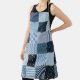 Quilt design. Seamless patchwork pattern from stitched squares with different geometric ornaments. Textile print in blue colours.
