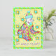 “I’m Cosy in my Quilt” coordinates with the invitation to show your love of quilts and dogs. Use for a party or quilting event. The back of the card with the event detail can be completely personalised for your event. This white dog is wrapped in a multi-coloured patchwork quilt to keep warm. He is wearing a striped toboggan. The background is orange with a green border and quilt stars on the front. The back is orange with turquoise accents and a quilt star border strip. This dog will win you over with his adorable expression.
