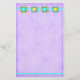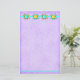 Quilt Lover Dog stationery can be customised to add your information or address. The page is tones of purple with a border strip of quilt stars at the top and a turquoise border line at the bottom.