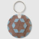 Quilt block in brown and blue "castle" pattern. The central "castle" is a brown star shape, surrounded by the "6 sided wall" with the "watch towers" extending out from the middle of the walls.