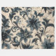 Quilted Cream and Navy Blue Floral Design Fleece Blanket
