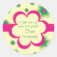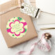 An adorable sticker to put anywhere. Blue tonal flowers decorate the cream background. A large magenta flower holds your customisable name or any message you like. Available in alternate colours with matching note cards and postage.