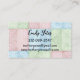 Custom quilting or sewing business card done in with the left side done in pastel quilt squares. Graphics of a cute colourful quilted goose, decorates the right side of the front. Personalise all the text fields for your business needs.