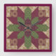 Quilted Green Burgundy Star Square Wall Clock