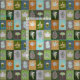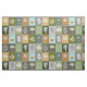 Quilted Summer Leaves Fabric has a green, grey, yellow and blue pattern with a faux quilt look with faux applique of leaves, pine cones and acorns. You can make this leaves print smaller or larger on this fabric. A lovely pattern throw pillow for any sewing project with green, grey, yellow or blue.