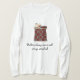 I love this shirt. I had written to the artist asking her if this picture was available on a shirt, and she wrote me back telling me where I could find the shirt. These shirts can be custom made to have a different saying. I loved this saying and went with it. The artist wrote me back later to tell me that she had seen my order go through. How's that for service? Pretty special. It's just as displayed. Perfect!