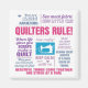 Quilters Rule! The perfect funny quote and quilting sayings magnet for quilters everywhere. Filled with quilt related quotes such as "keep calm and quilt on". Makes a fantastic gift for someone who loves quilt.