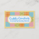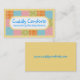 Cute quilter's business card or gift tag with patches or patterned fabric and stitching around the edge in soft, dull yellow and multi-coloured fabric swatches. Get the whole ensemble – business cards, stickers, and greeting or note cards.