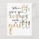 A beautiful patchwork greetings postcard. When life gives you scraps make a quilt. This gorgeous typography design would make a wonderful 'thinking of you' encouragement postcard for a quilter or sewer - or use as a special birthday card.