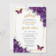 Quinceañera 15 Dark Royal Purple Floral Butterfly Invitation