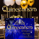 Quinceanera 15th Birthday Dark Blue Dress Tiara Invitation