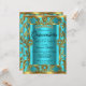 Quinceanera 15th Birthday Teal Blue Tiara Gold 2 Invitation