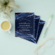 A modern, stylish and glamourous invitation for a Quinceañera, 15th birthday party. Navy blue and rose gold agate, marble stone background. The name is written with a modern hand lettered style script. Personalise and add your party details.