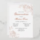Elegant botanical rose gold foil quinceanera invitation, providing for mass and reception. Chic and simple with delicate line drawings for peony rose flowers and leaves with classic script typography.