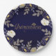 Quinceanera and Tiara Botanical in Blue and Gold Paper Plate