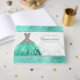 Cherish your memories by having your guests sign this chic aqua quinceañera guest book featuring a glittering dress in aqua and silver with glitter heels between a diamond border and sparkling aqua band. Background is a soft white silk. Back features diamond and aqua sparkling borders along the top and bottom. Elegant script in dark grey for your name, event and date on the front and name along the spine. Easy to personalise with custom options.