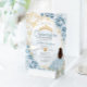 Quinceanera Baby Blue Gold Floral Acrylic Invitations