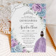 Quinceañera Baby Blue Purple Lilac Floral Silver Invitation
