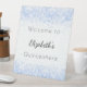 Quinceanera baby blue white glitter dust welcome pedestal sign