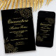 Quinceanera Black and Gold Outline Flowers Floral Invitation