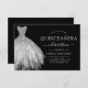 White, Black and Silver Faux Glitter Sparkle Girly Quinceanera Party Sequined Dress 15th Birthday Party Invitation. This is the perfect Girl's Quinceanera Celebration Invitation for an elegant and modern Silver and Black Sparkle Quinceanera. Please contact the designer for matching customised items.