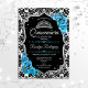 Features damask pattern, script font, aqua blue roses, tiara and confetti. Classy turquoise blue design with faux glitter silver. Perfect for an elegant glam celebration.