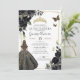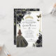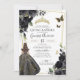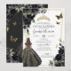 Quinceañera Black Floral Gold Butterfly Dress Invitation