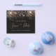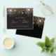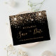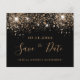 A girly and trendy Save the Date for a Quinceañera, 15th birthday party. A black background decorated with faux gold glitter. Personalise and add a date and name and text. The text: Save the Date is written with a large trendy hand lettered style script.