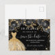 Quinceanera black gold dress florals save the date announcement postcard