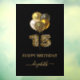 For a girly and glamourous Quinceañera, 15th birthday party. A black background, decorated with balloons. With the text: Happy Birthday. Personalise and add a name. The name is written in dark rose gold with a modern hand lettered style script with swashes. Number 15 is written with a trendy balloon style font, leopard pattern. To keep the swashes only delete the sample name, leave the spaces or emoji's in front and after the name.