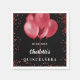 For an elegant Quinceañera, 15th birthday party. A chic black background. Decorated with red confetti and balloons. Personalise and add the name and age/text
