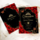 Quinceanera Black Red Gold Floral Invitation