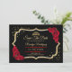 Black red and gold Quinceanera celebration Save The Date card. Features, script font, red roses, tiara and confetti. Perfect for an elegant princess style glam celebration. Personalize with your own details. Printed Zazzle cards or instant download digital printable template.