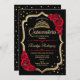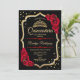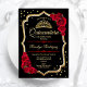 Features script font, red roses, tiara and confetti. Classy design with faux glitter gold. Perfect for an elegant glam celebration.