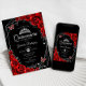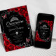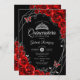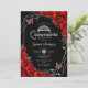 Red, black and silver Quinceanera celebration invitation. Features, script font, silver butterflies, watercolor roses and tiara. Perfect for an elegant princess style glam celebration. Personalise with your own details. Printed Zazzle invitations or instant download digital printable template.