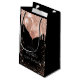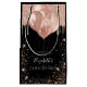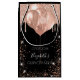 A gift bag for a glamourous Quinceañera, 15th birthday party. A black background with faux glitter drips, paint dripping look and balloons. The text: The name is written with a modern hand lettered style script. Personalise and add a date and name.