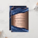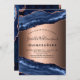 A modern, stylish and glamorous invitation for a Quinceañera, 15th birthday party. Blue and rose gold agate, marble stone background. The name is written with a modern hand lettered style script. Personalize and add your party details.