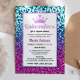 A modern, pretty chic and elegant purple and blue glitter invite with bokeh lights with a photo on the back side.