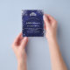 For an elegant Quinceañera, 15th birthday. A blue background colour, the blue colour is uneven. Decorated with faux silver glitter dust and a tiara, crown. Personalise and add a name, age and party details. The name is written with a hand lettered style script