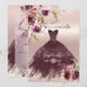 PixDezines quinceanera featuring watercolor flowers fall roses in burgundy and mauve pink and a Princess glitter gown in merlot and iridescent rose gold background (see filters to change tone) and confetti. All elements are editable.