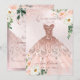 Quinceañera, Blush Floral Sparkle Gown Rose Gold Invitation