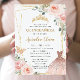 Quinceañera Blush Pink Floral Princess Gown Tiara Invitation
