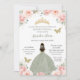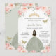 Quinceañera Blush Pink Floral Sage Green Princess Invitation