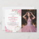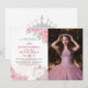 Quinceanera Blush Pink Floral Silver Crown Photo Invitation