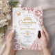 Quinceanera Blush Pink Gold Floral Dress Invitation