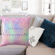 A trendy rainbow coloured background with unicorn and rainbow pastel colours in blush pink, purple, rose gold, mint green. Decorated with faux glitter dust, confetti. Personalise and add a name, written with a modern hand lettered style script. Purple coloured letters.